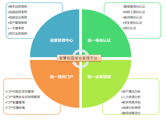 信息化管理平臺(tái)對(duì)各子系統(tǒng)資源的整合、優(yōu)化、分析并對(duì)校園組織和業(yè)務(wù)流程進(jìn)行再造,推進(jìn)校園制度創(chuàng)新、管理創(chuàng)新和服務(wù)創(chuàng)新,實(shí)現(xiàn)教育管理的信息化、決策的科學(xué)化、管理的規(guī)范化。