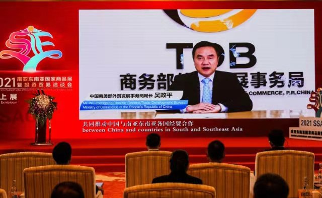 2021南亞?wèn)|南亞國(guó)家商品展暨投資貿(mào)易洽談會(huì)于2021年8月25日開(kāi)幕,副省長(zhǎng)邱江在啟動(dòng)儀式現(xiàn)場(chǎng)致辭并宣布線(xiàn)上展啟動(dòng)。商務(wù)部、外交部相關(guān)部門(mén)負(fù)責(zé)人視頻致辭。越南工貿(mào)部副部長(zhǎng)杜勝海、老撾駐華大使坎葆·恩塔萬(wàn)、南盟工商會(huì)代理秘書(shū)長(zhǎng)佐勒菲卡爾·阿里·巴特視頻致賀。本屆商洽會(huì)充分利用展會(huì)平臺(tái)和商洽會(huì)的新舉措,推動(dòng)實(shí)現(xiàn)互利共贏。